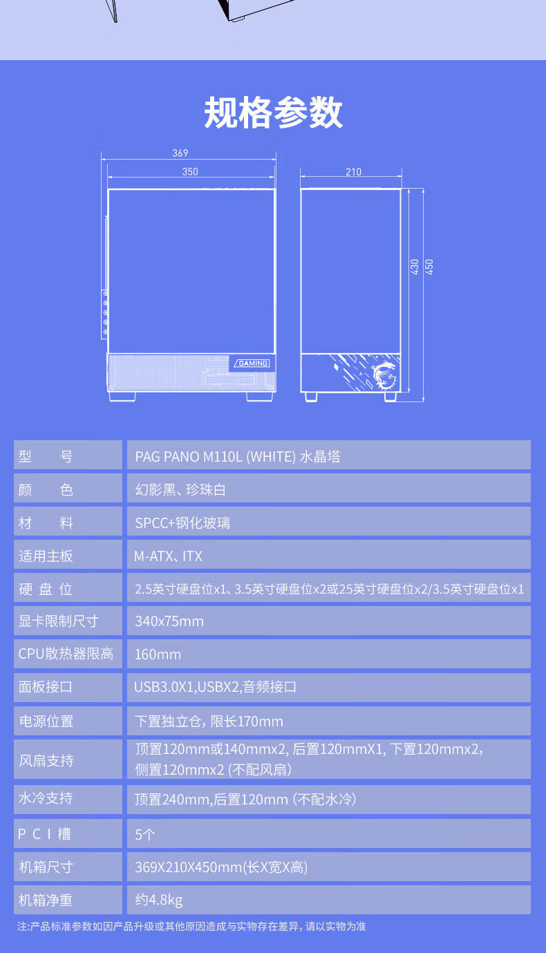 • 商品名称:微星(MSI)PAG PANO M110L WHITE 水晶塔机箱