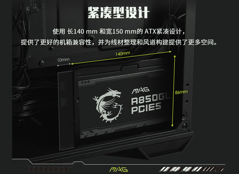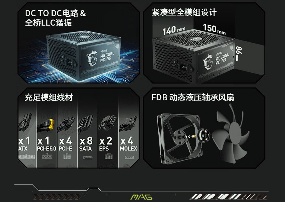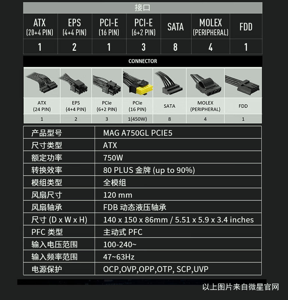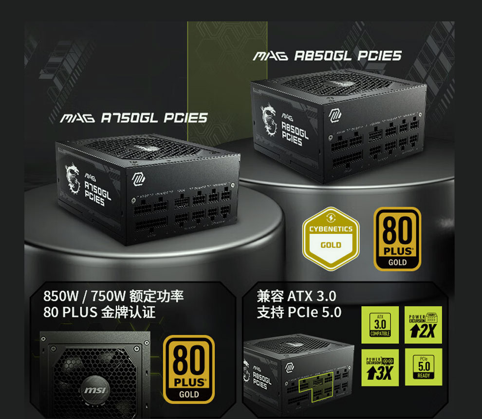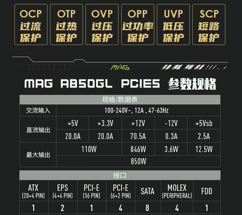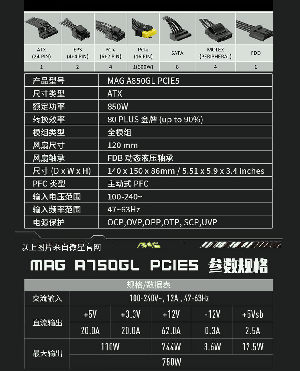 • 商品名称:微星 MAG A850GL PCIE5 电源