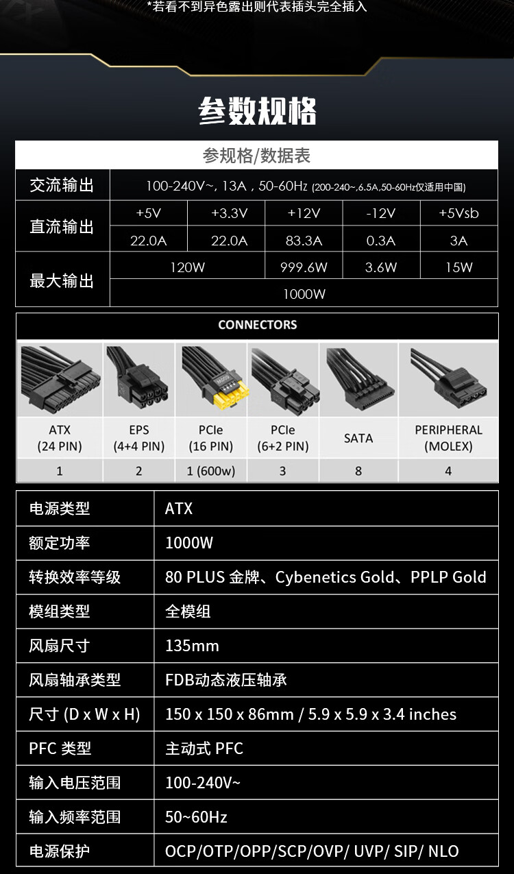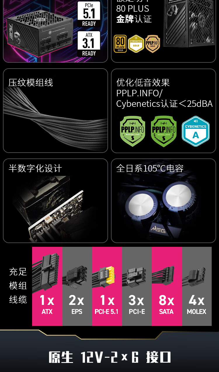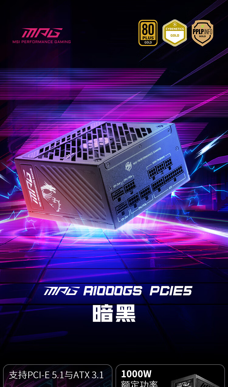 • 商品名称:微星 MPG A1000GS PCIE5 电源