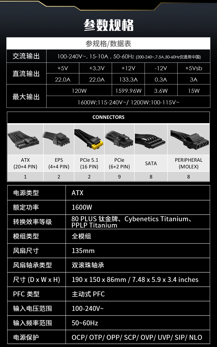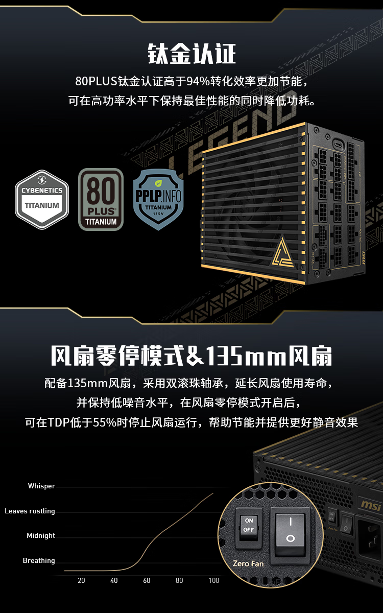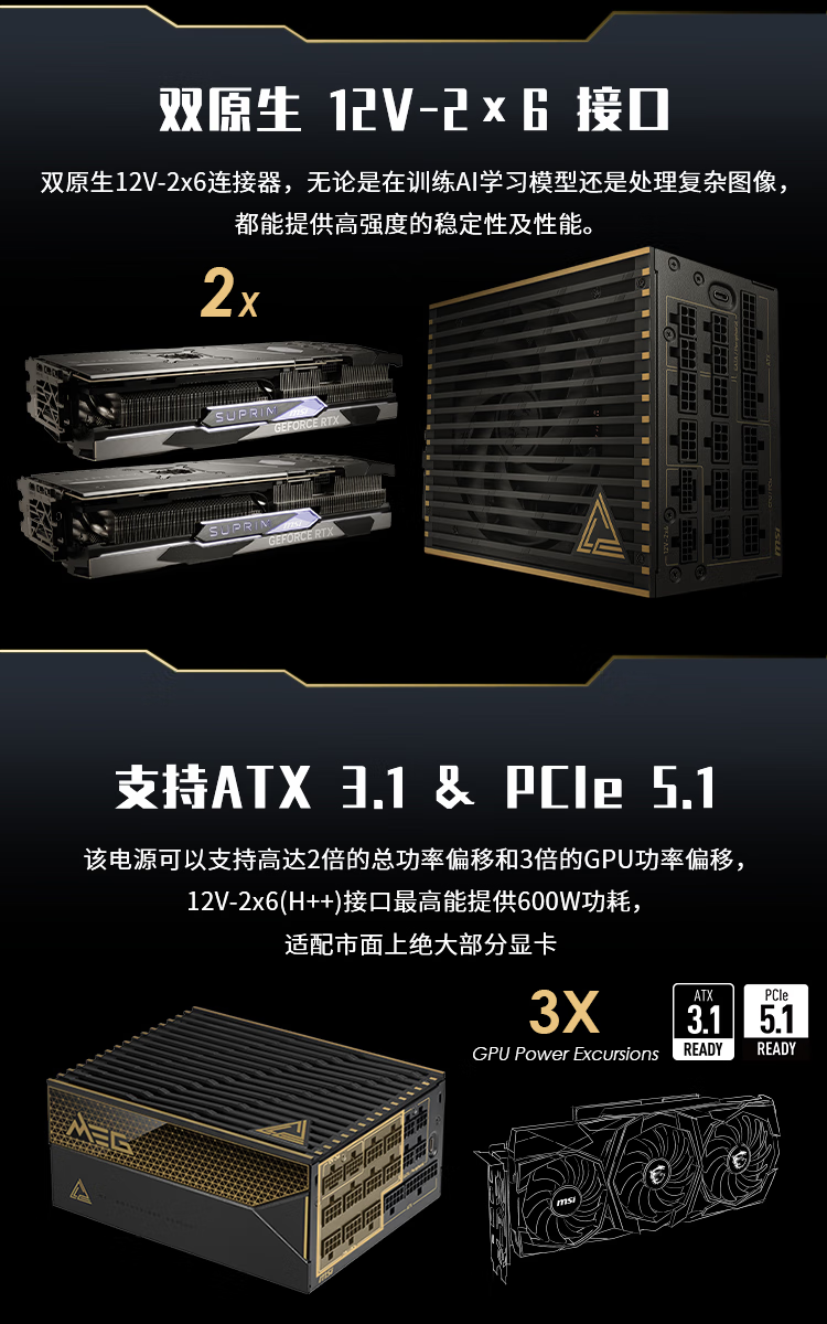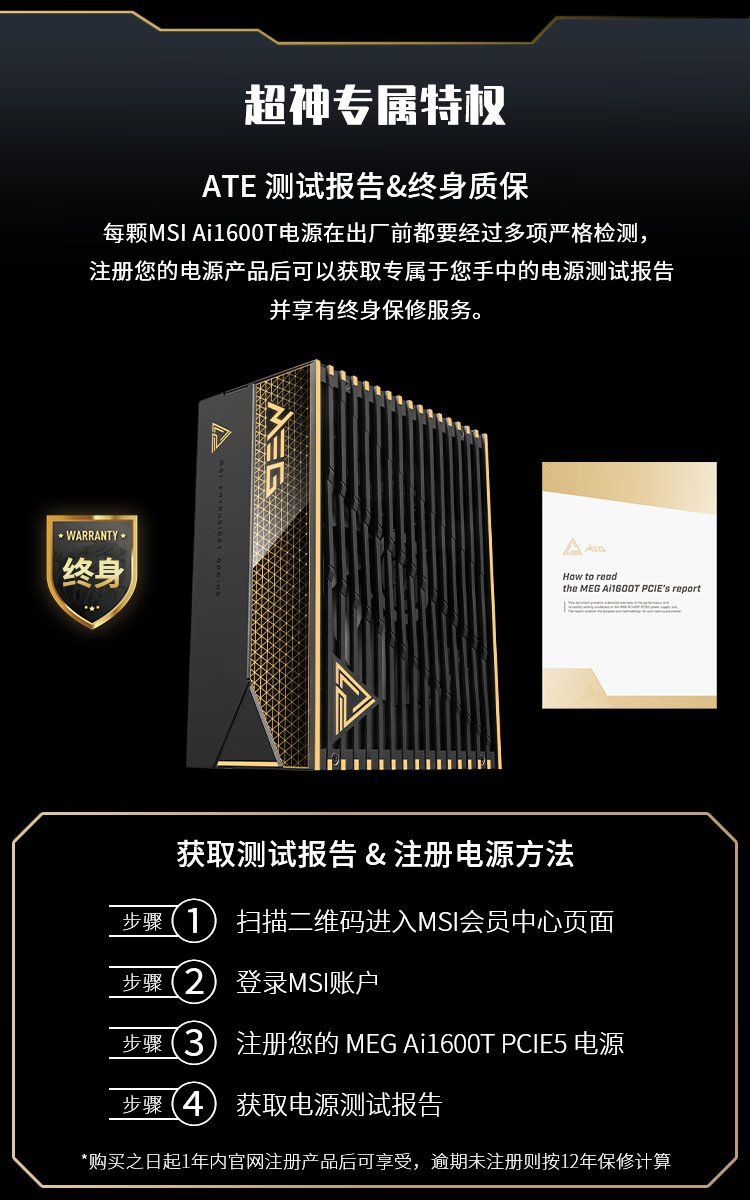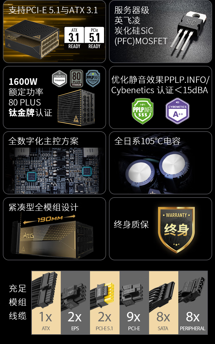 • 商品名称:微星 MEG Ai1600T PCIE5 电源