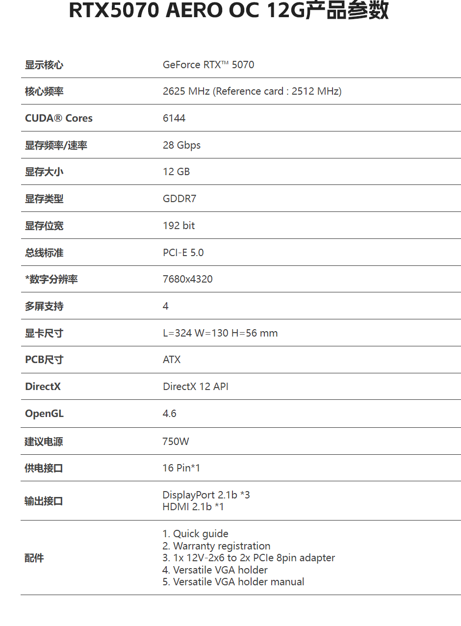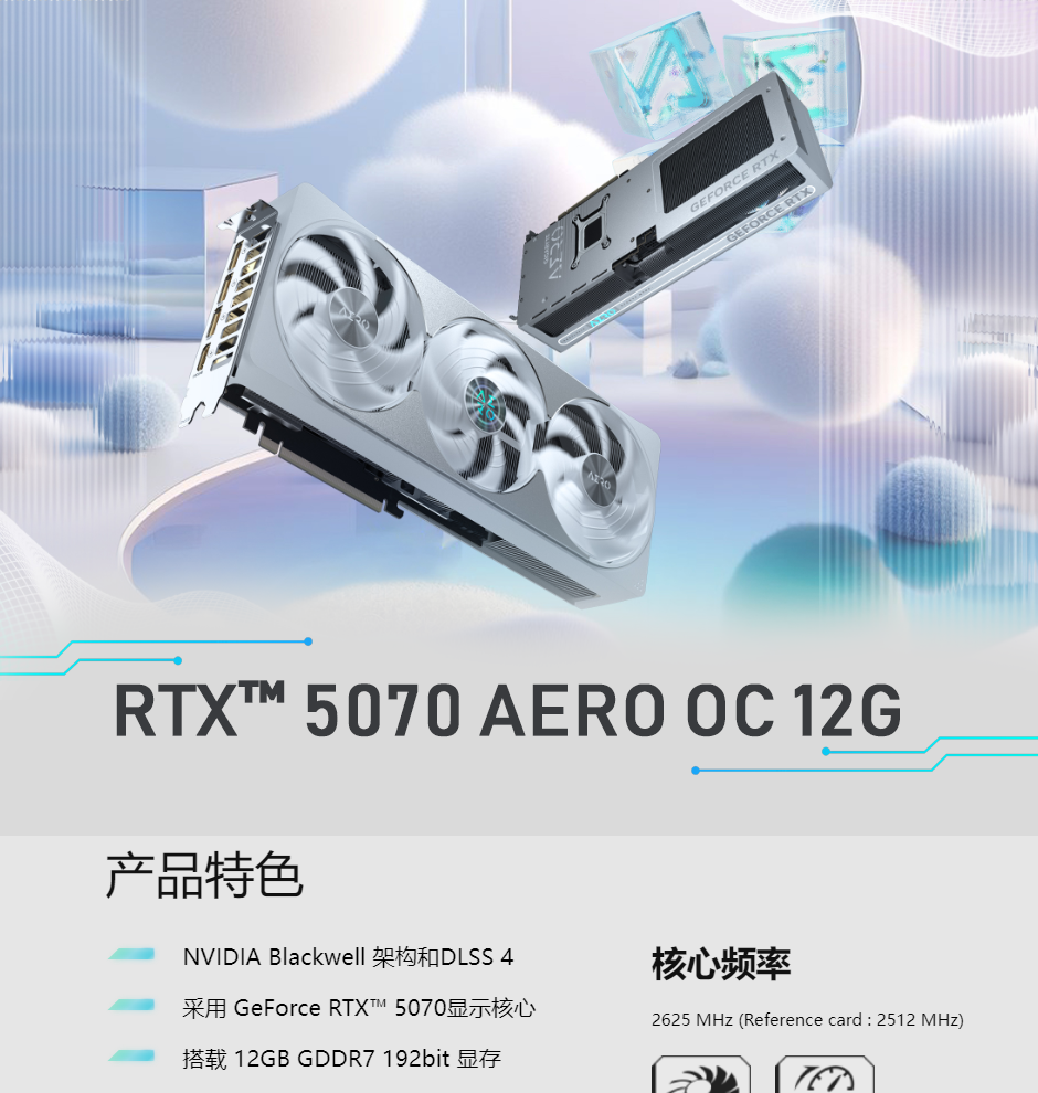 • 商品名称:技嘉(GIGABYTE)N5070AERO OC-12GD 雪鹰(白色)