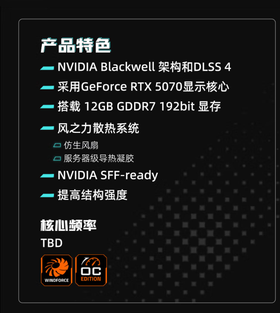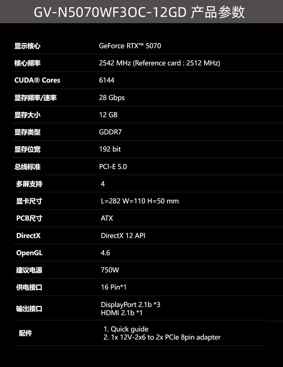 • 商品名称:技嘉(GIGABYTE)N5070WF3OC-12GD EC 风魔 工包