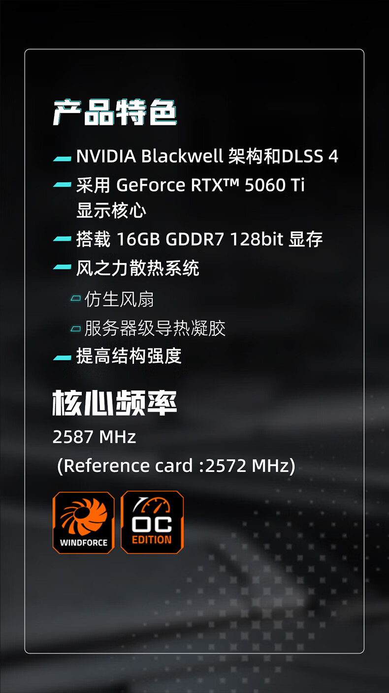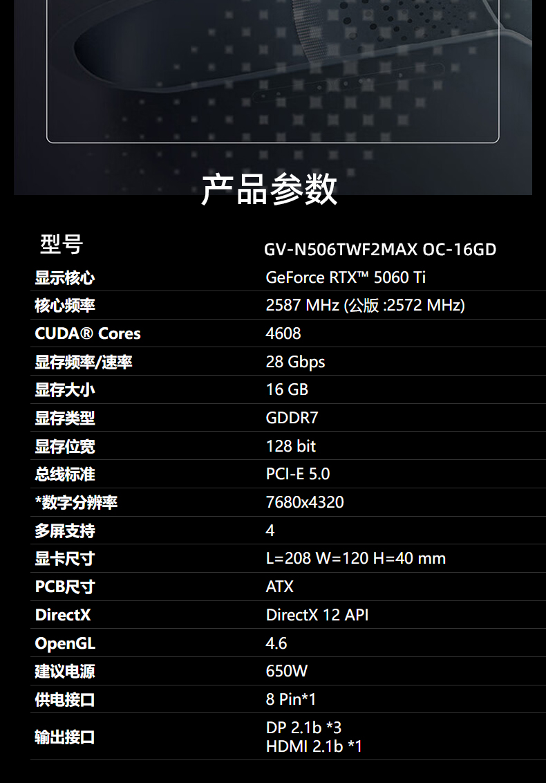 • 商品名称:技嘉(GIGABYTE)N506TWF2MAX OC-16GD风魔MAX 2风扇