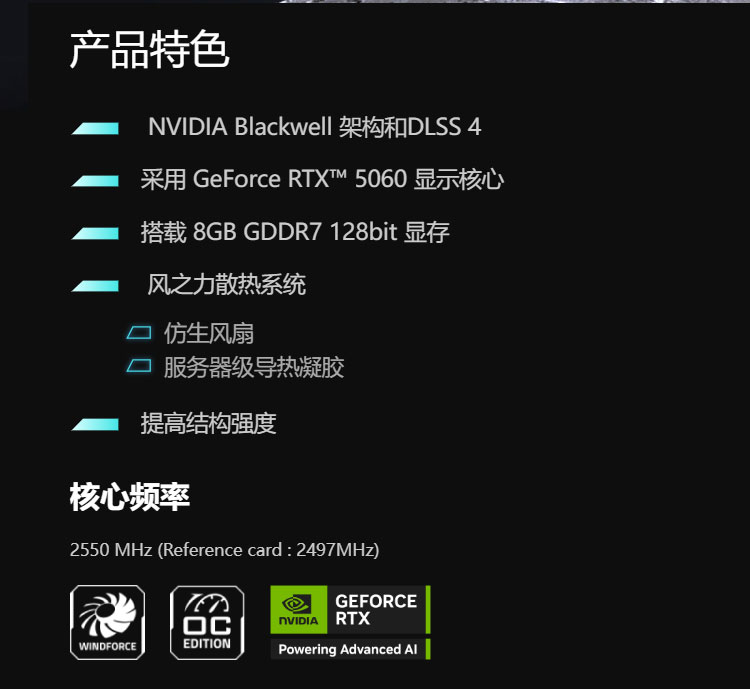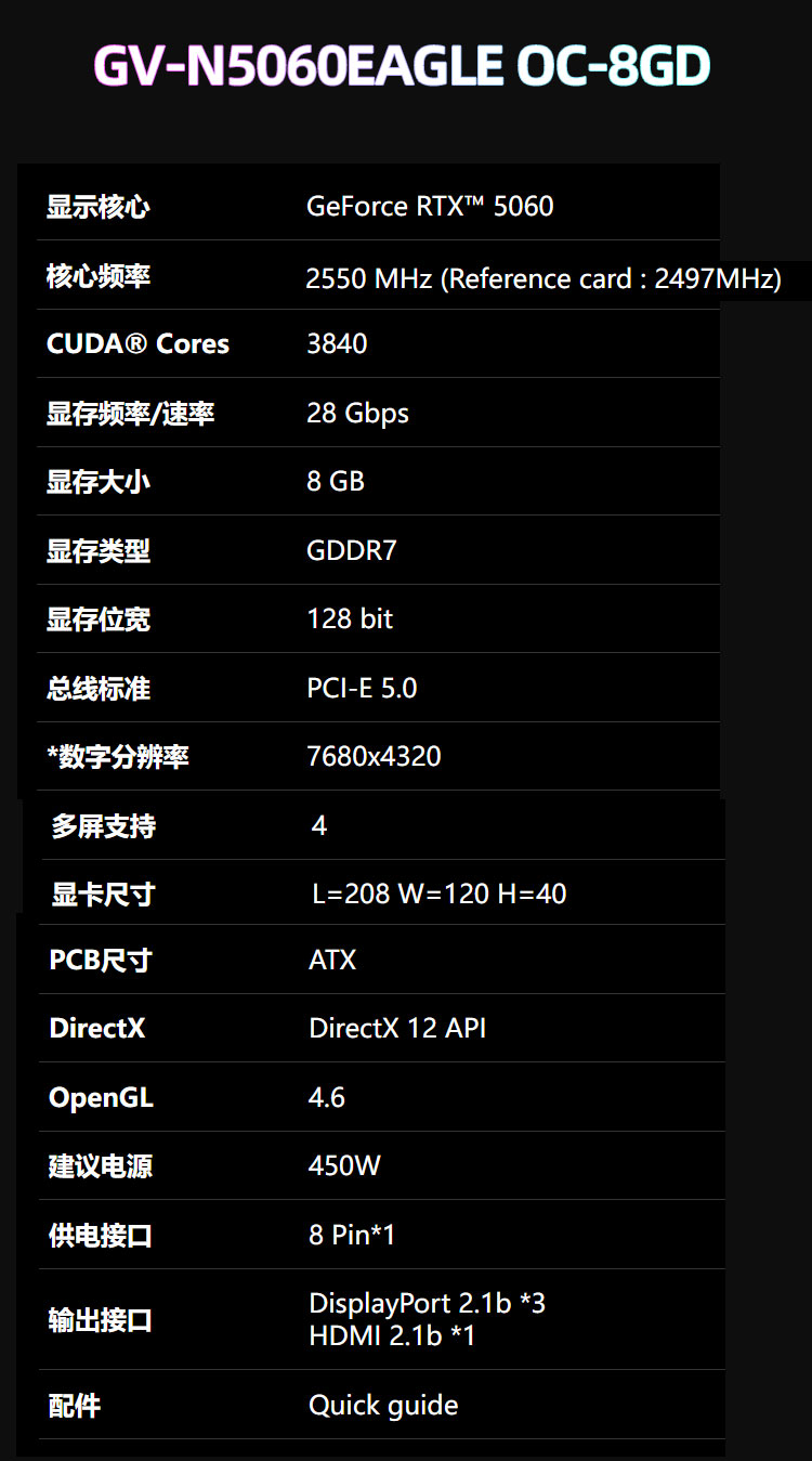 • 商品名称:技嘉(GIGABYTE)N5060 EAGLE OC-8GD 猎鹰,2风扇