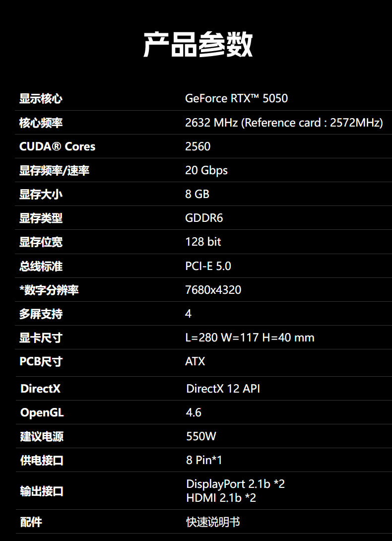 • 商品名称:技嘉(GIGABYTE)N5050GAMING OC-8GD魔鹰 3风扇
