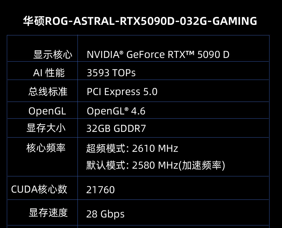 华硕(ASUS)ROG ASTRAL RTX5090 D O32G GAMING 夜神