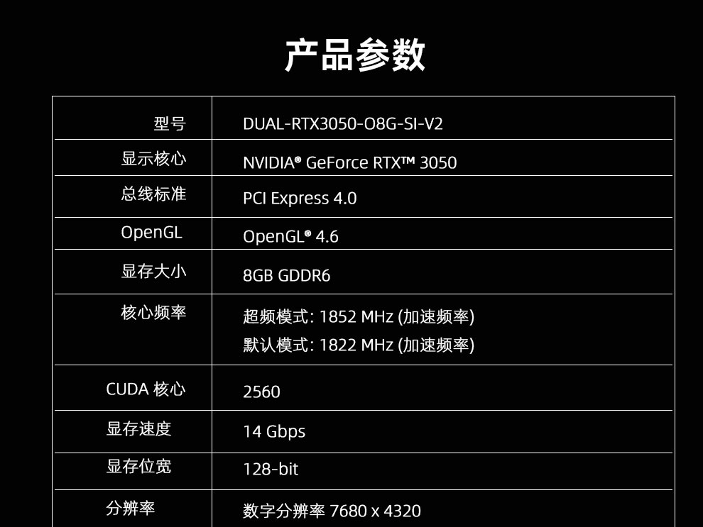 华硕(ASUS)DUAL-RTX3050-O8G-SI-V2 雪豹双风扇