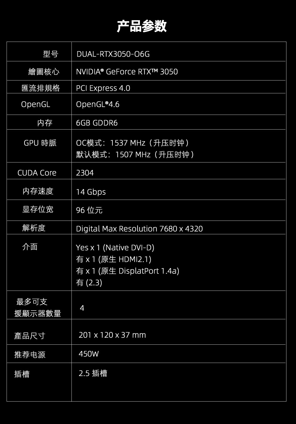 • 商品名称:华硕(ASUS)DUAL-RTX3050-O6G 雪豹双风扇