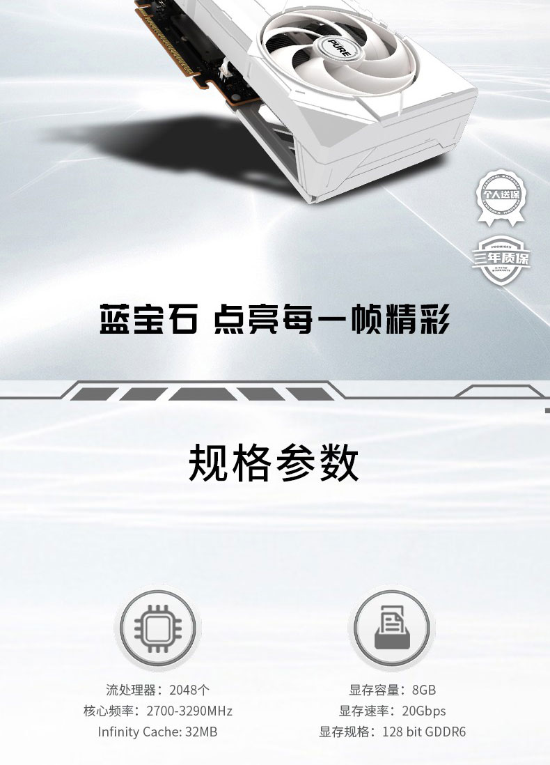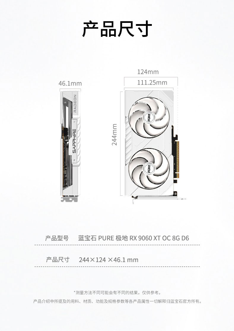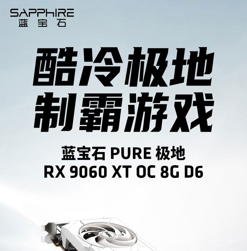 • 商品名称:蓝宝石(Sapphire)RX9060 XT 8GB GDDR6 OC 极地 (白色)