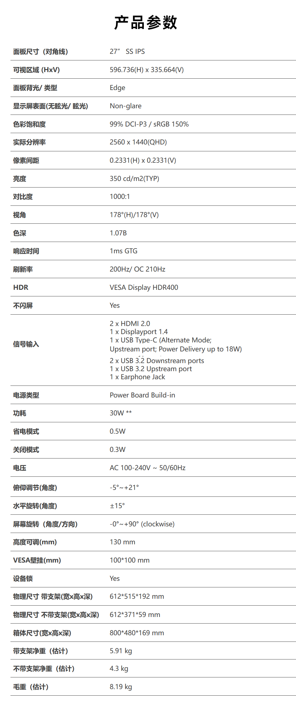 • 商品名称:技嘉M27Q2 QD ICE显示器