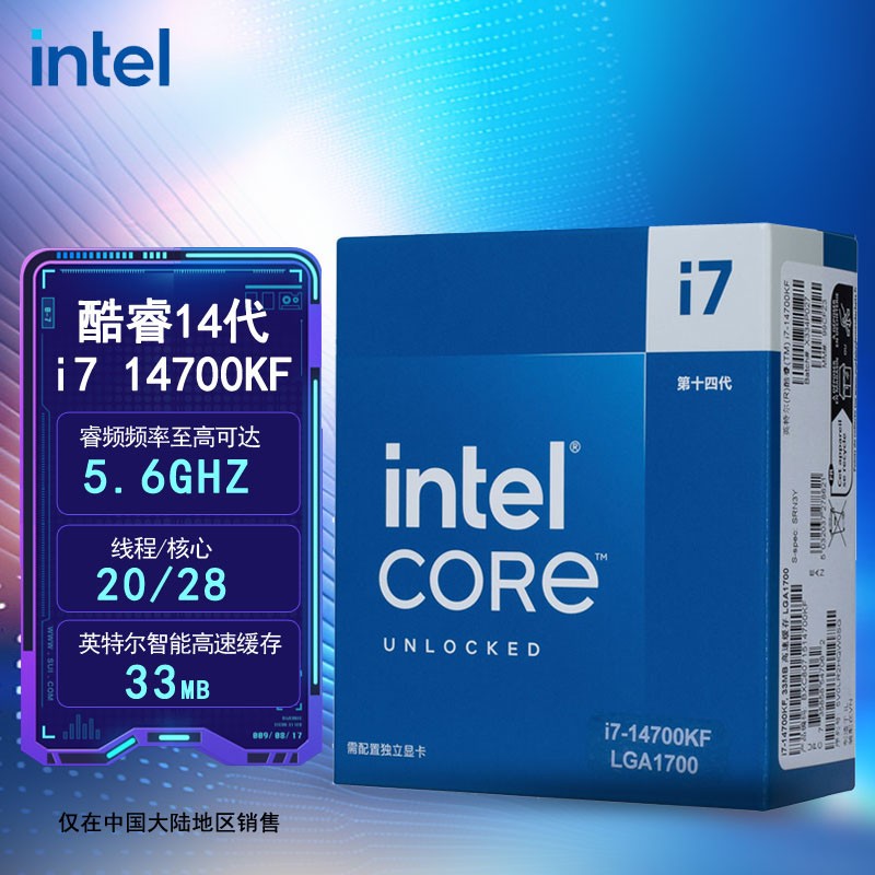 • 商品名称:英特尔(Intel) i7-14700KF 14代 CPU处理器 20核28线程 处理器