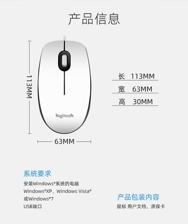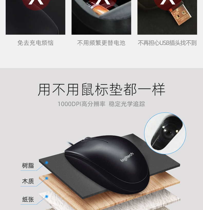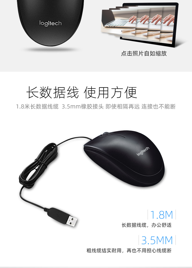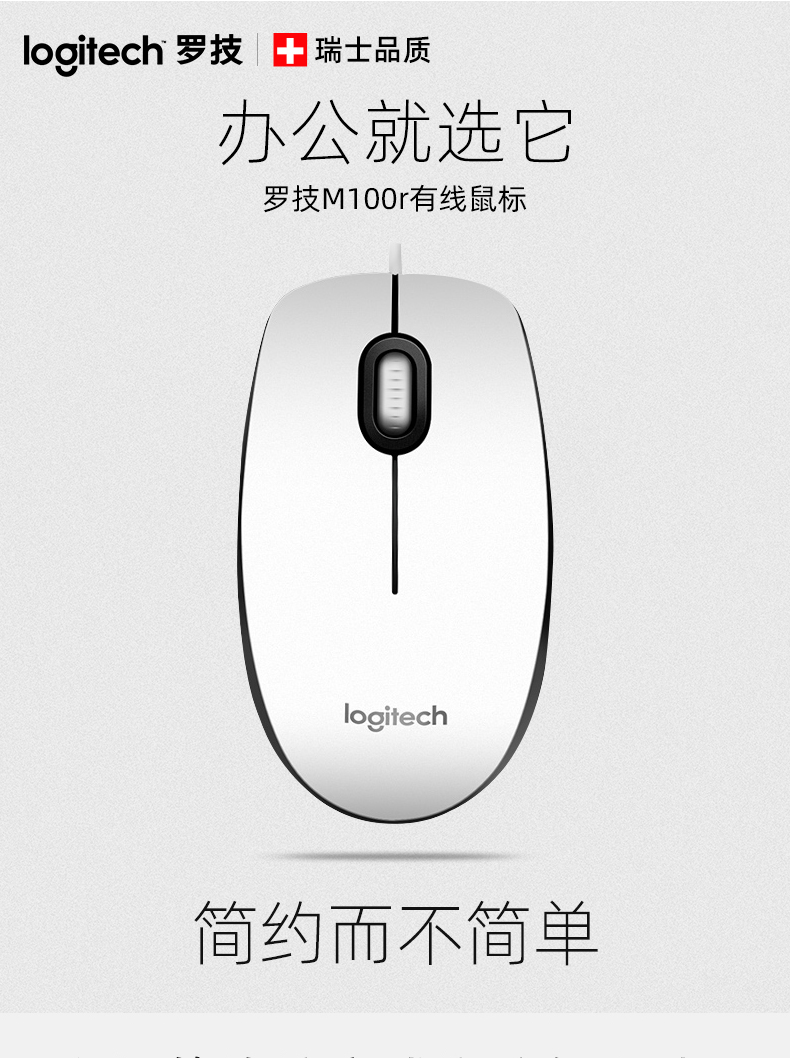 • 商品名称:Logitech罗技M100r 鼠标 有线鼠标 办公鼠标 对称鼠标 大手鼠标
