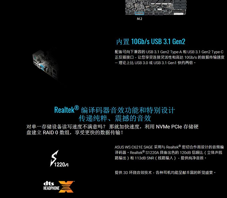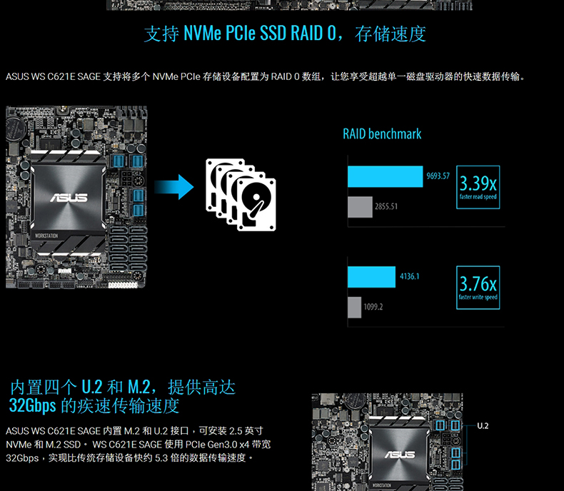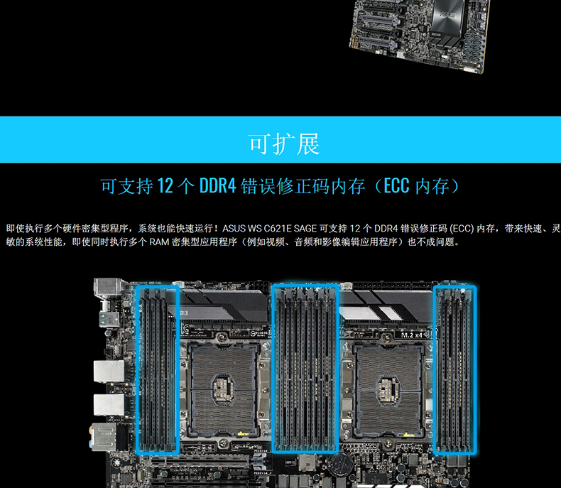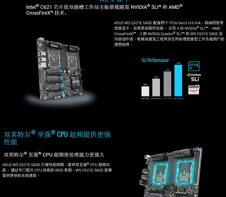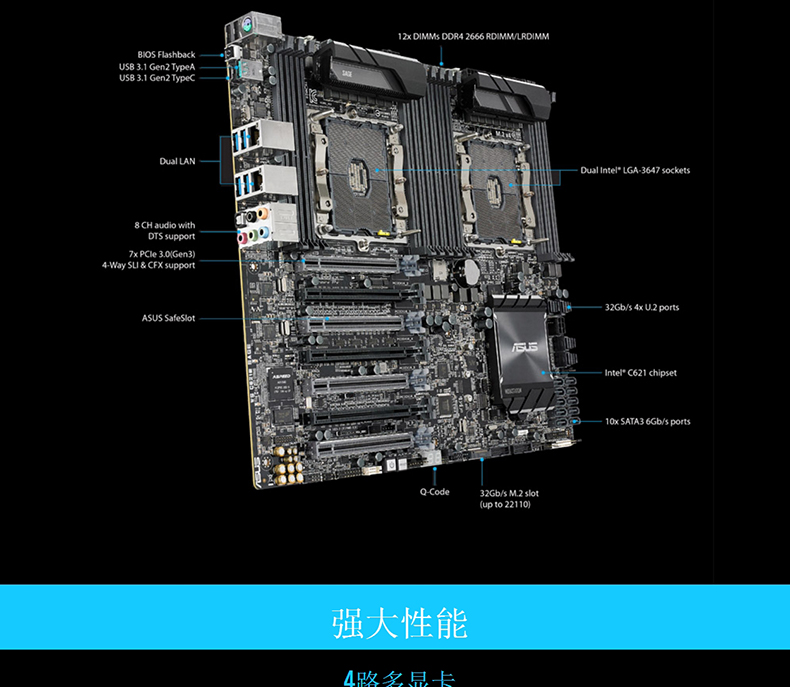 华硕WS C621E SAGE双路3647工作站主板4路SLI12内存卡槽