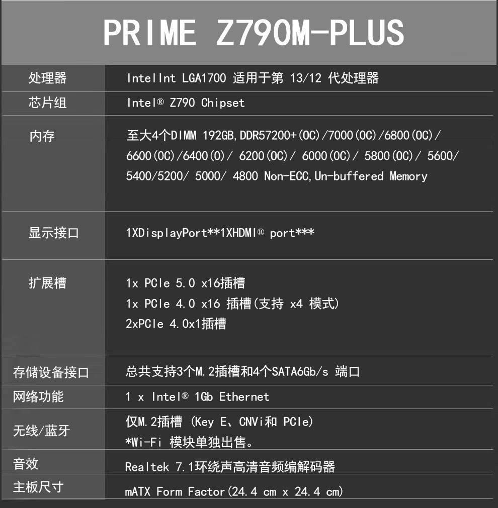 • 商品名称:华硕PRIME Z790M-PLUS D5 台式机电脑主板