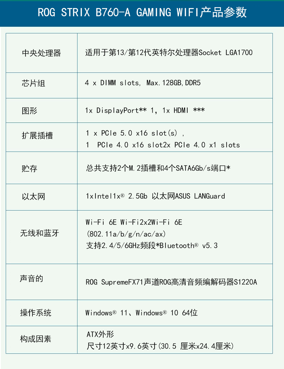 • 商品名称:华硕ROG STRIX B760-A GAMING WIFI 主板