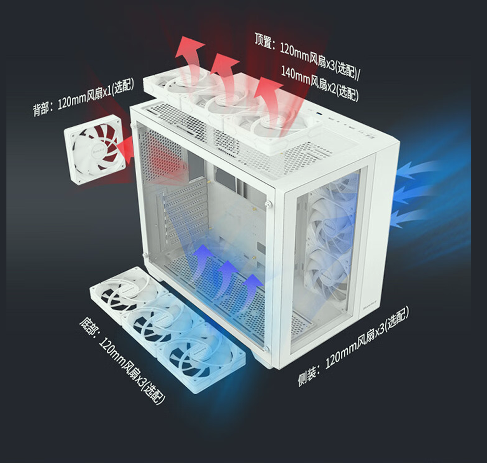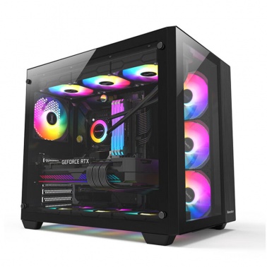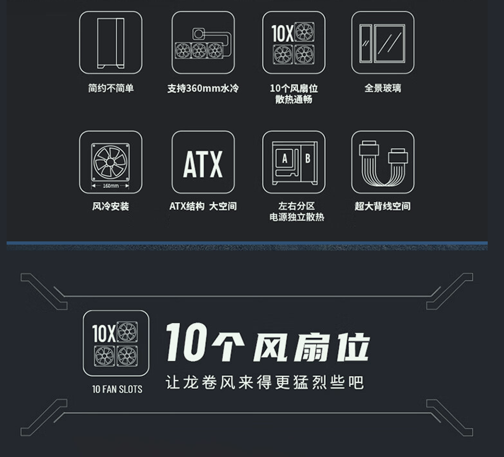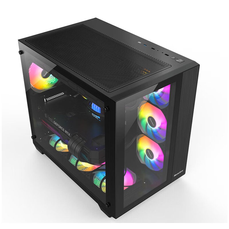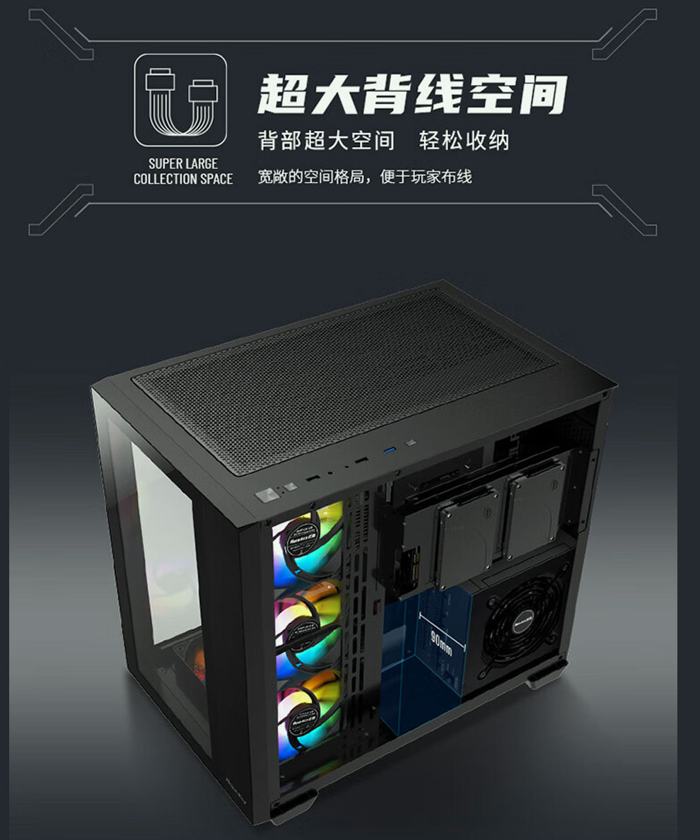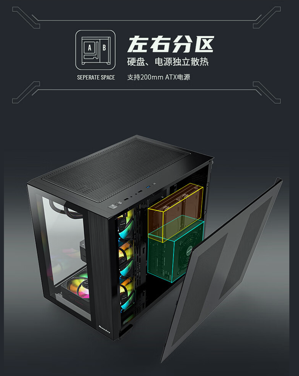 航嘉(Huntkey) S980龙卷风 全景侧透钢化玻璃 游戏机箱 -黑色