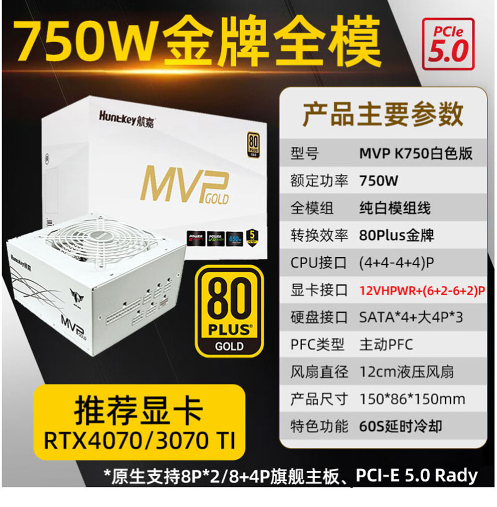 • 商品名称:航嘉(Huntkey)电源MVP K750 白色 金牌-全模组PCI-E5.0