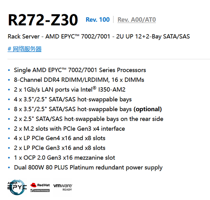 • 商品名称:技嘉(GIGABYTE)R272-Z30 AMD 服务器