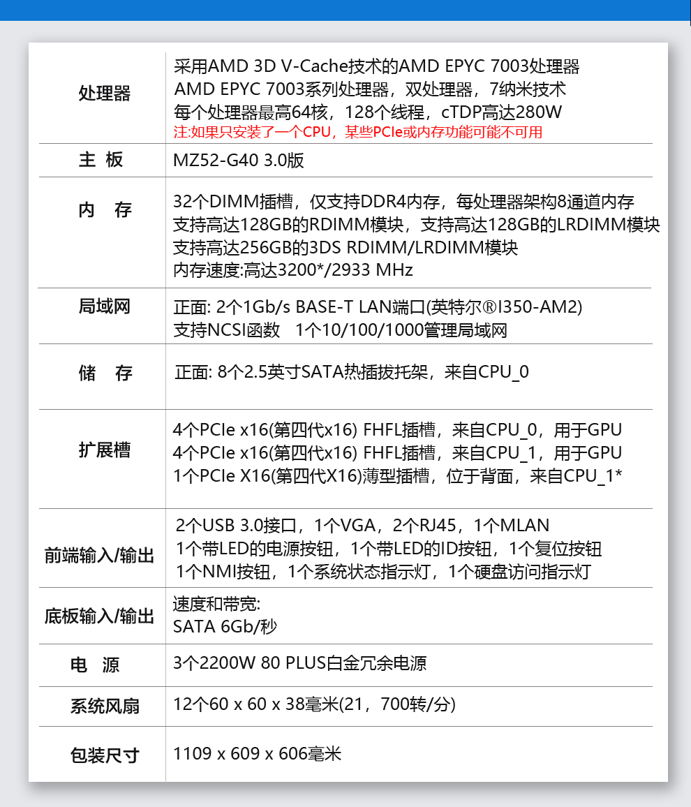 • 商品名称:技嘉(GIGABYTE)G482-Z52 AMD 服务器