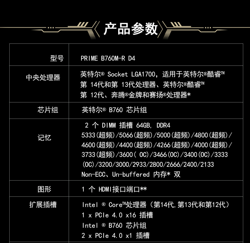 • 商品名称:华硕PRIME B760M-R D4 主板