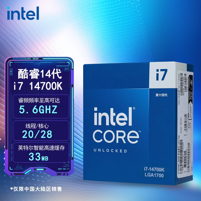 英特尔(Intel) 14代 CPU处理器 台式机 原盒 14700K CPU