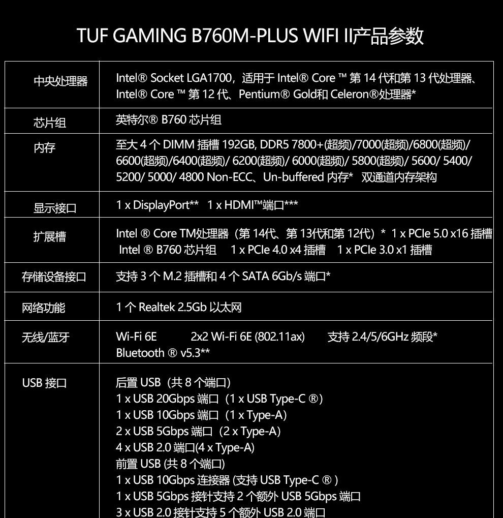 • 商品名称:华硕TUF GAMING B760M-PLUS WIFI II 主板