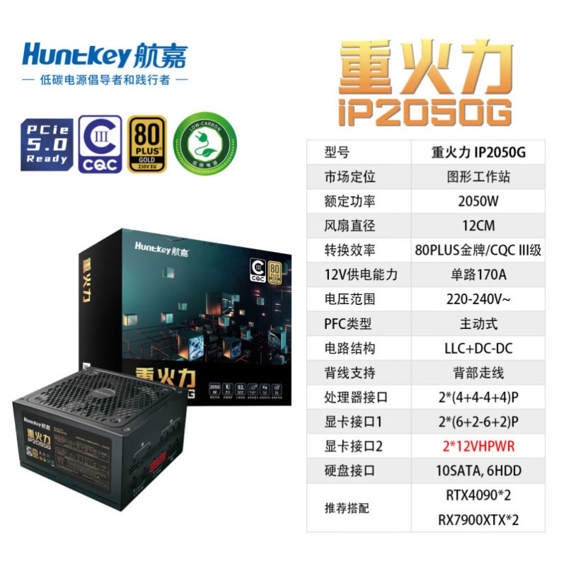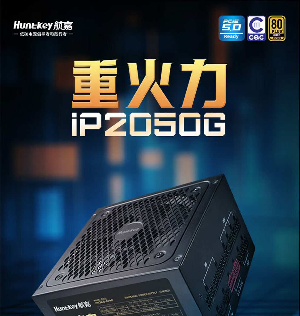 航嘉(Huntkey)重火力IP2050G ATX3.0 PCI E5.0 80PIUS认证金牌全模组台式机电脑电源