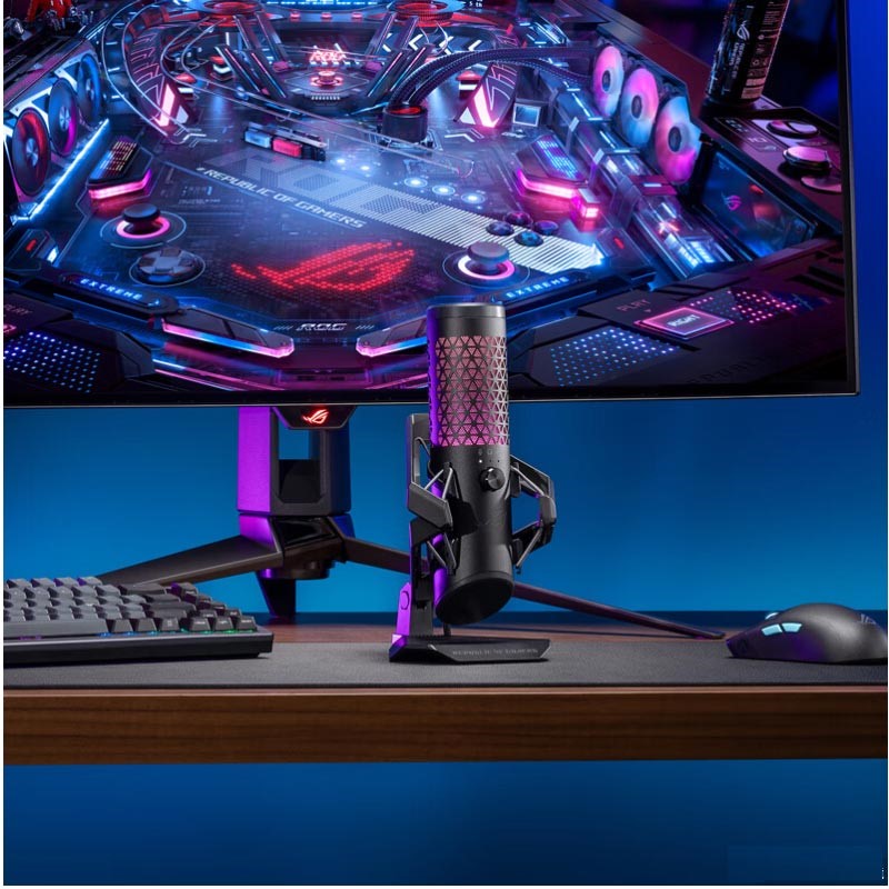 ROG卡尼克斯专业麦克风 桌面麦克风直播设备唱歌专用麦克风全民k歌神器专业主播高通滤波降噪RGB黑色