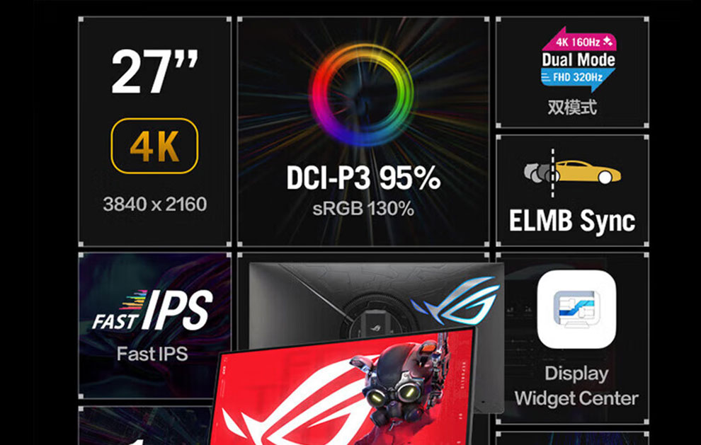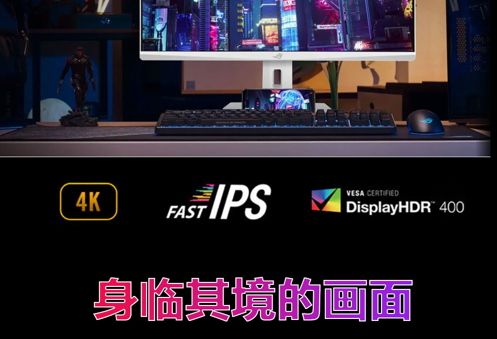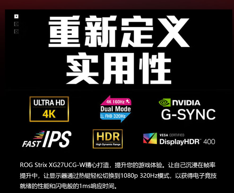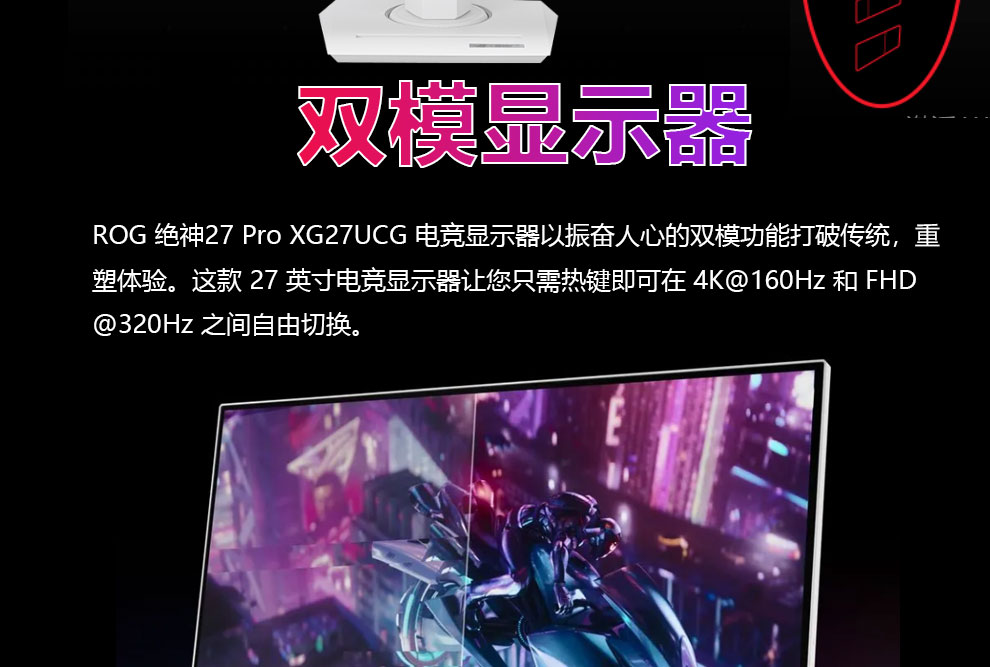 华硕ROG XG27ACG-W绝杀 27英寸显示器2K电竞 2K180Hz原生高刷FastIPS 1ms响应G-SYNC兼容HDR400