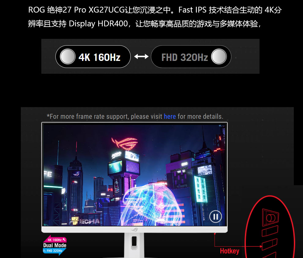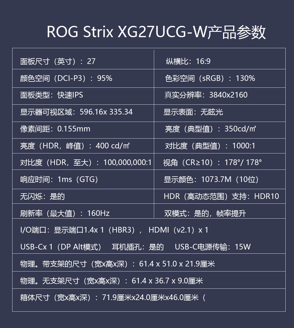• 商品名称:华硕ROG XG27ACG-W绝杀 27英寸显示器2K电竞 2K180Hz原生高刷FastIPS 1ms响应G-SYNC兼容HDR400