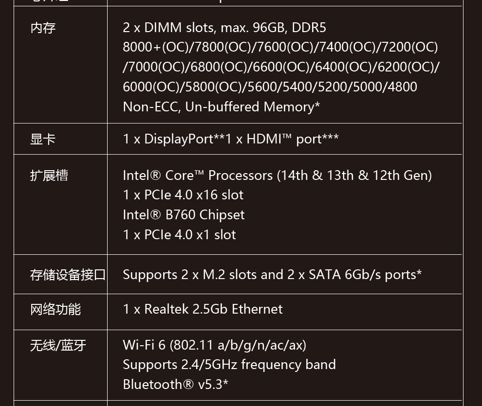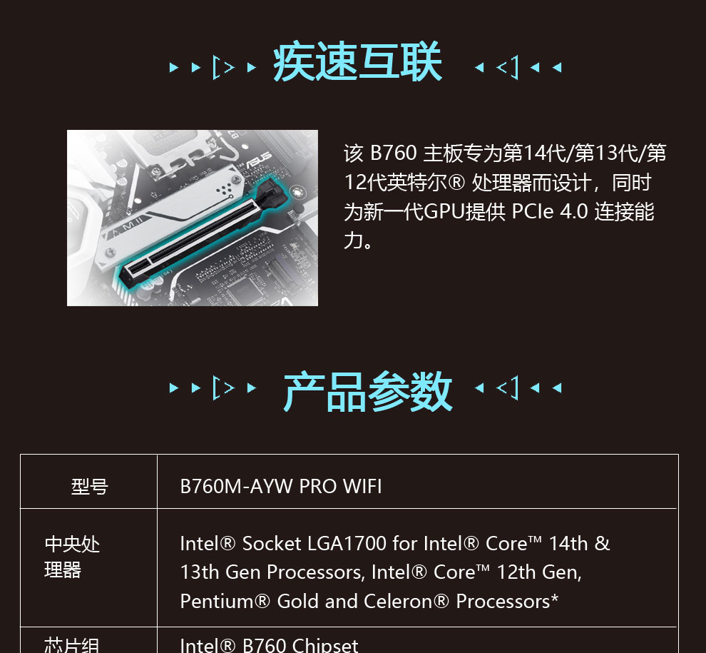 • 商品名称:华硕(ASUS)B760M-AYW PRO WIFI哎呦喂主板