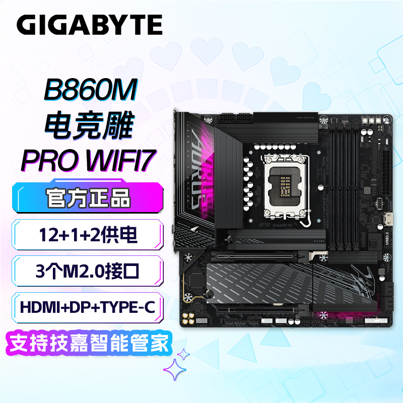 • 商品名称:技嘉(GIGABYTE)B860M AORUS PRO WIFI7 主板 (Intel B860/LGA 1851)