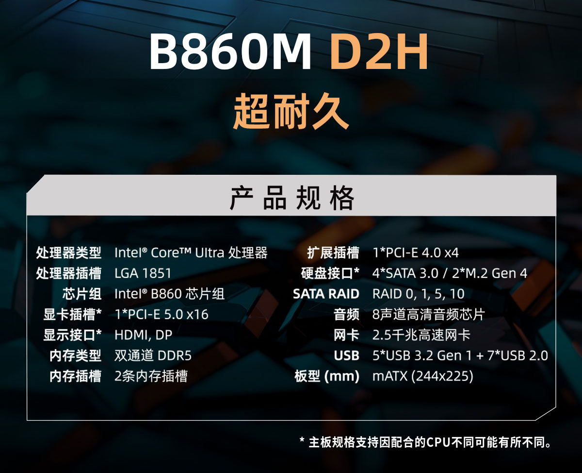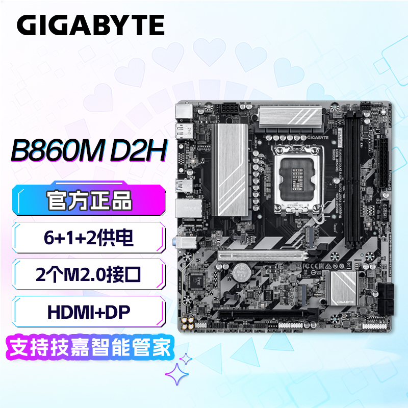 • 商品名称:技嘉(GIGABYTE)B860M D2H 主板 (Intel B860/LGA 1851)