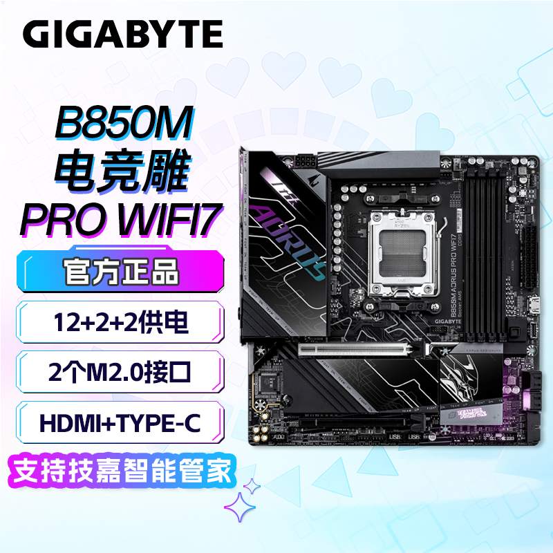 • 商品名称:技嘉(GIGABYTE)B850M AORUS PRO WIFI7 主板 (AMD B850/socket AM5)