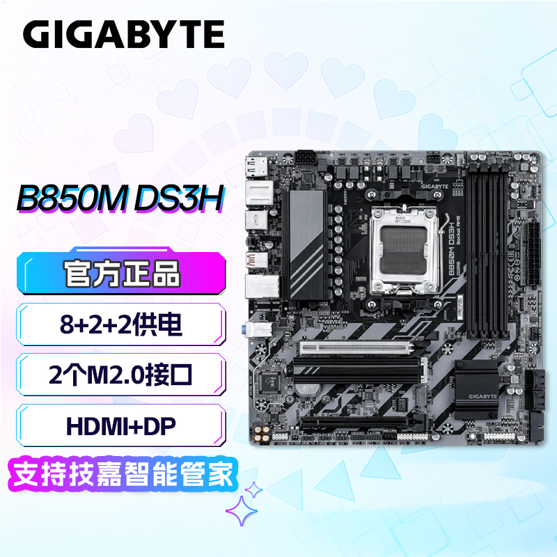 • 商品名称:技嘉(GIGABYTE)B850M DS3H主板 (AMD B850/socket AM5)