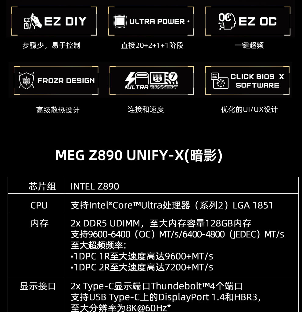 微星MEG Z890 UNIFY-X 暗影台式机电脑主板