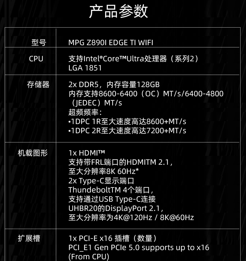 • 商品名称:微星MPG Z890I EDGE TI WIFI主板