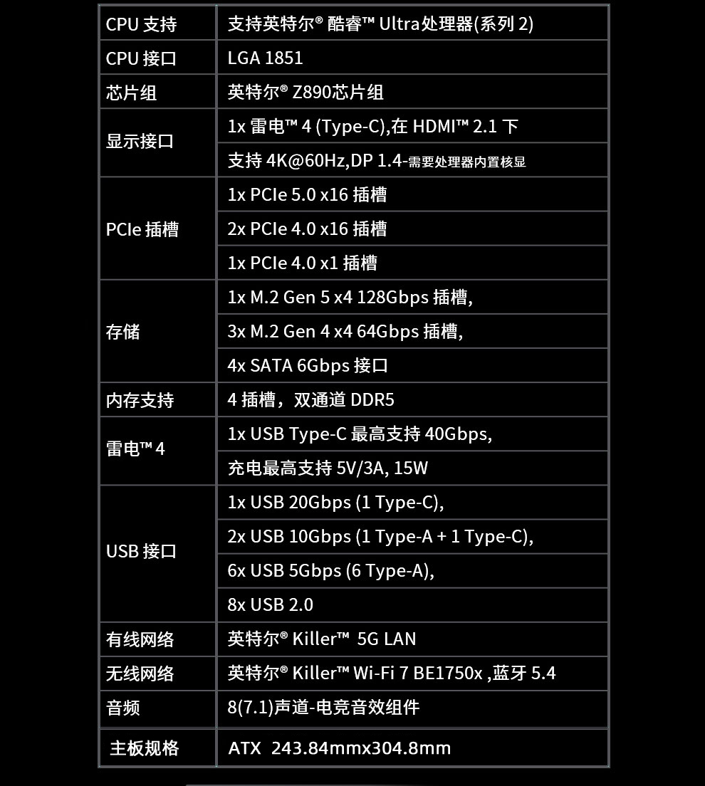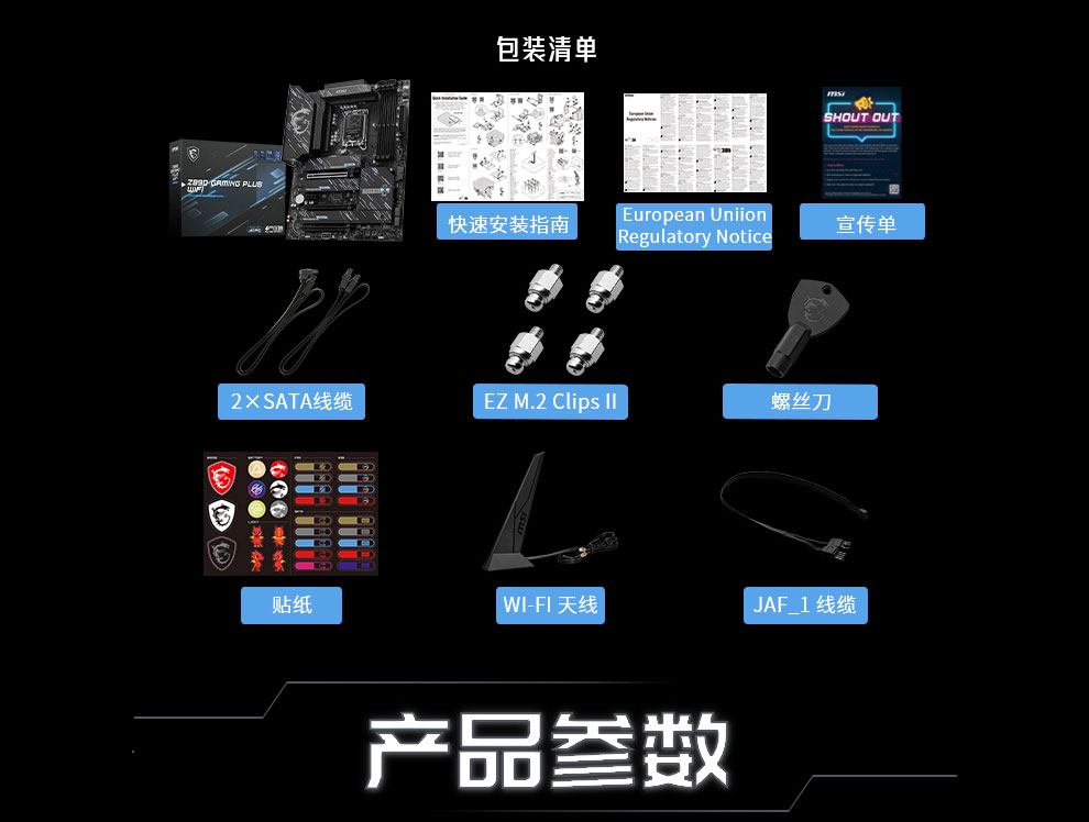 • 商品名称:微星 Z890 GAMING PLUS WIFI主板
