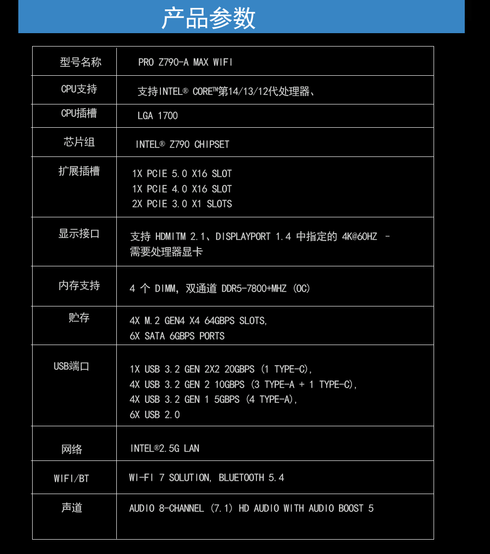 • 商品名称:微星PRO Z790-A MAX WIFI主板