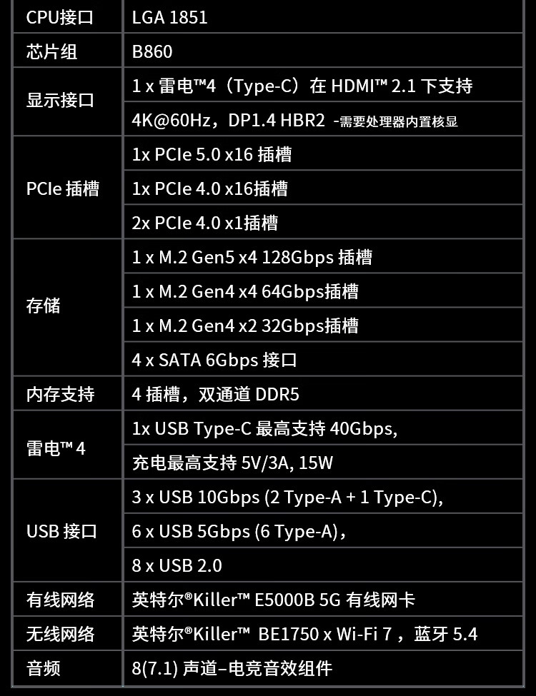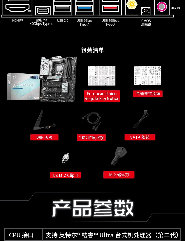 • 商品名称:微星 B860 GAMING PLUS WIFI主板
