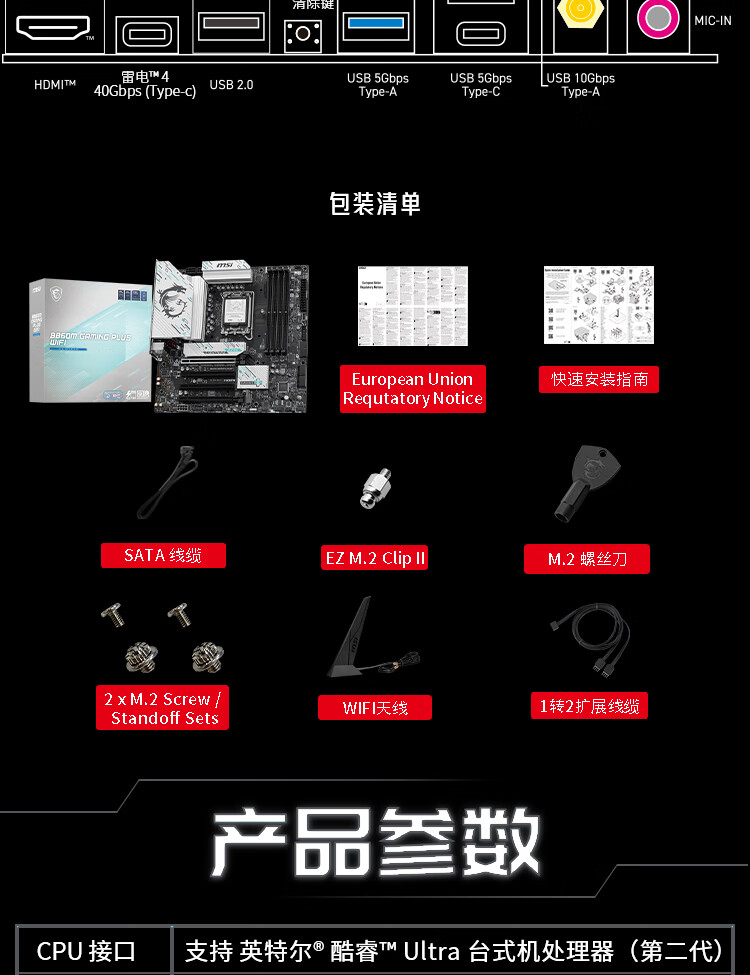 • 商品名称:微星B860M GAMING PLUS WIFI主板