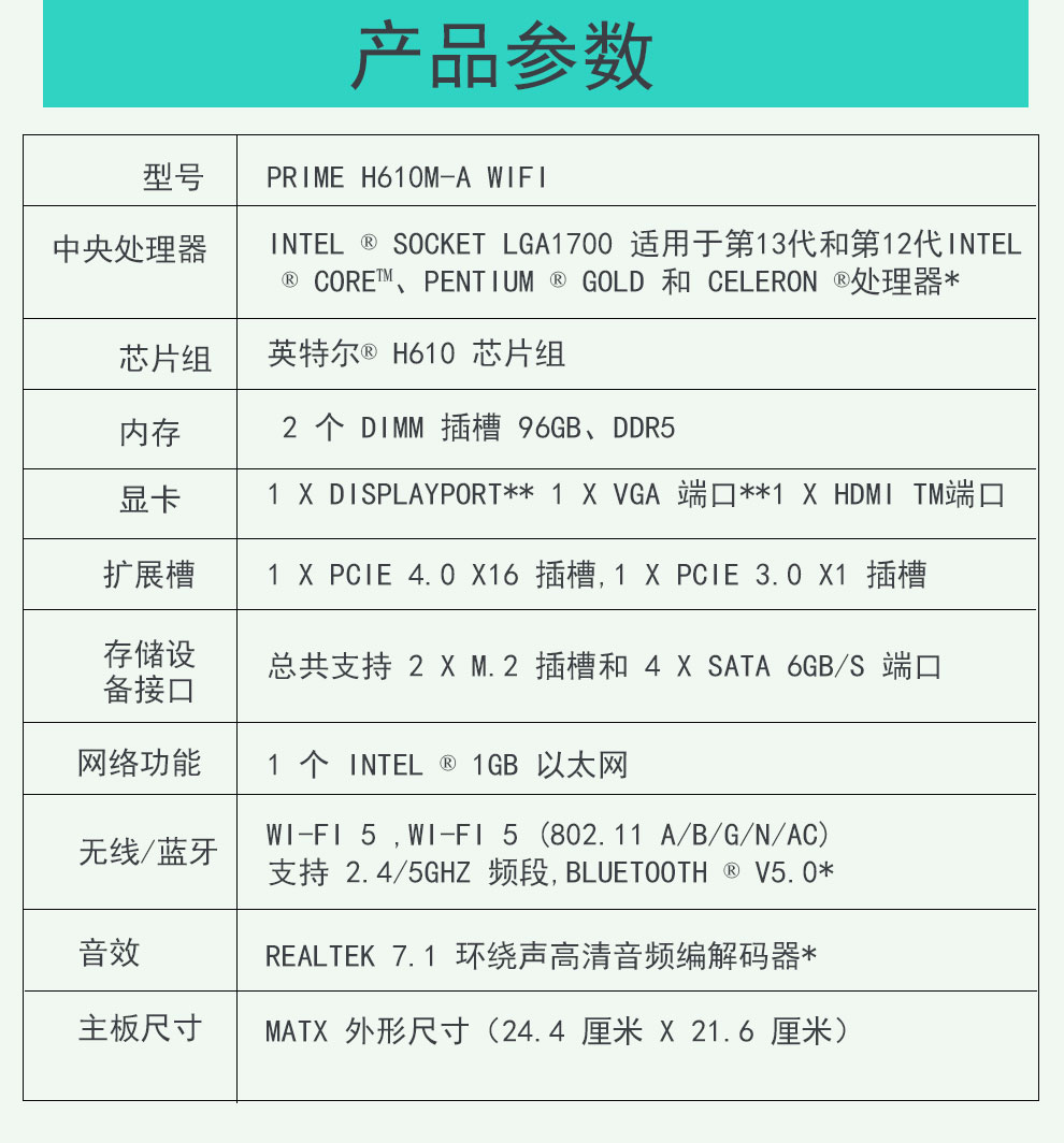 • 商品名称:华硕(ASUS)PRIME H610M-A WIFI主板