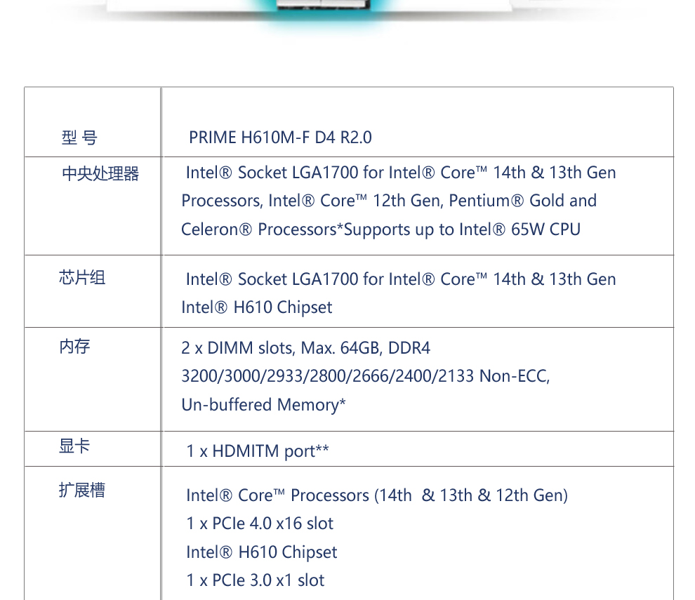 • 商品名称:华硕PRIME H610M-F D4 R2.0主板