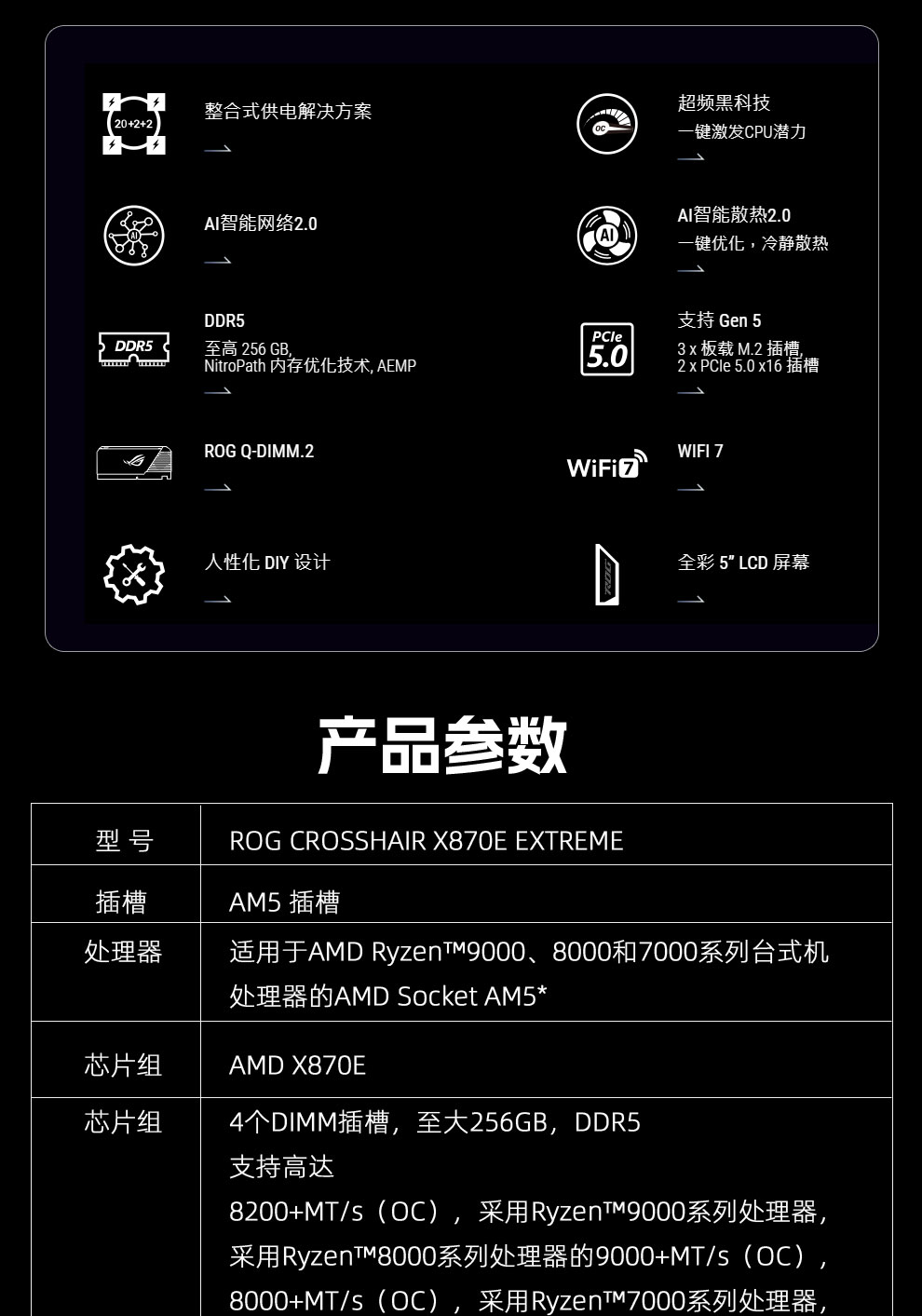 • 商品名称:华硕ROG CROSSHAIR X870E EXTREME主板