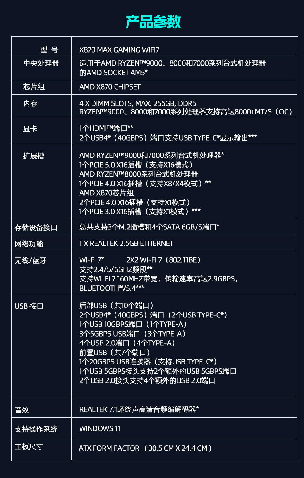 • 商品名称:华硕X870 MAX GAMING WIFI7主板