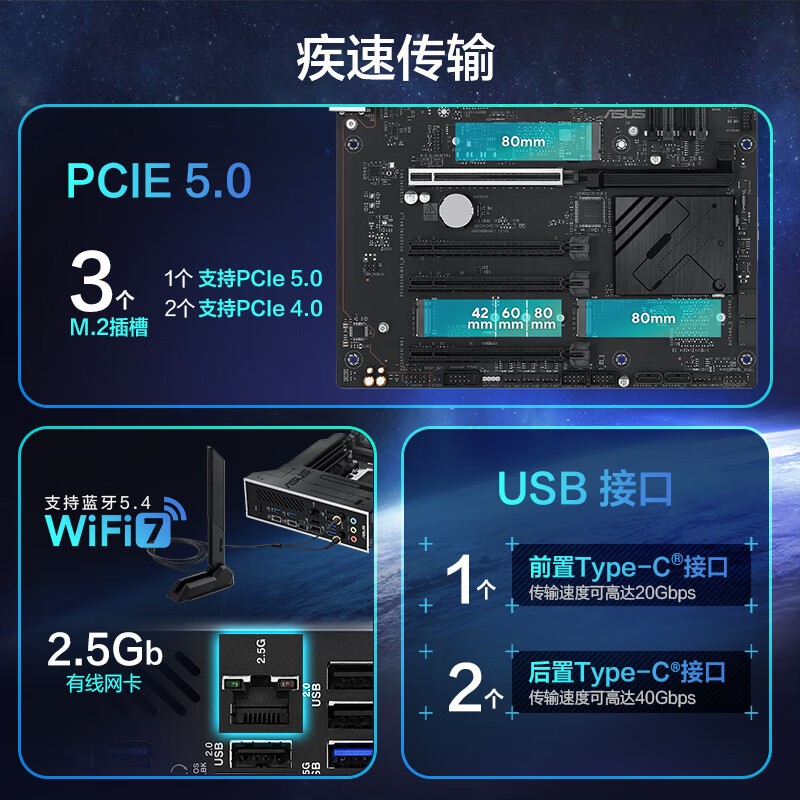 • 商品名称:华硕X870 MAX GAMING WIFI7 W主板