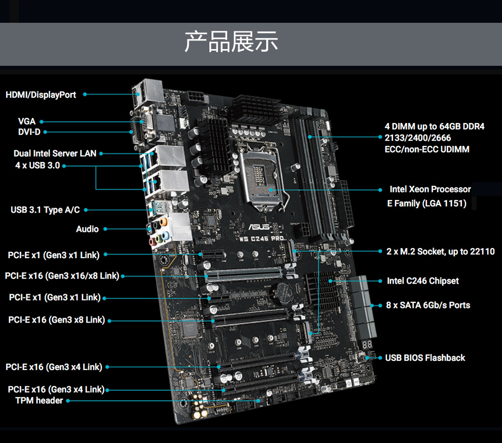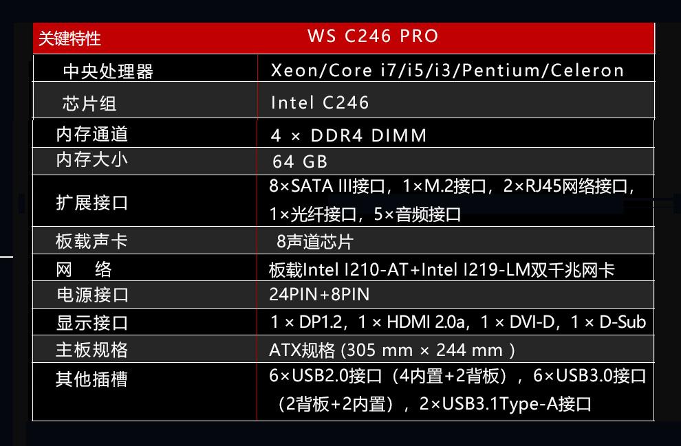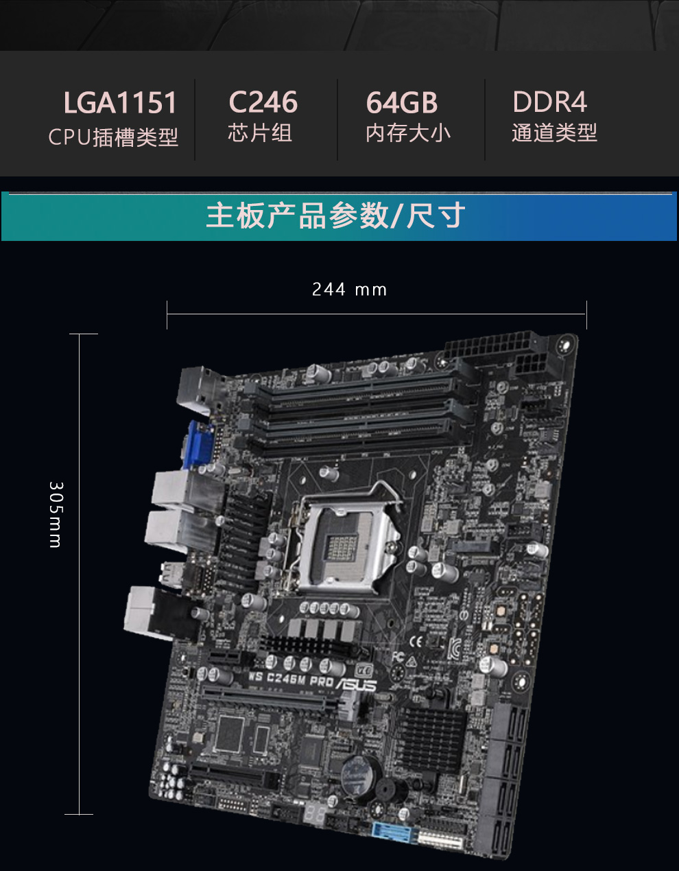 • 商品名称:华硕WS C246M PRO 工作站主板