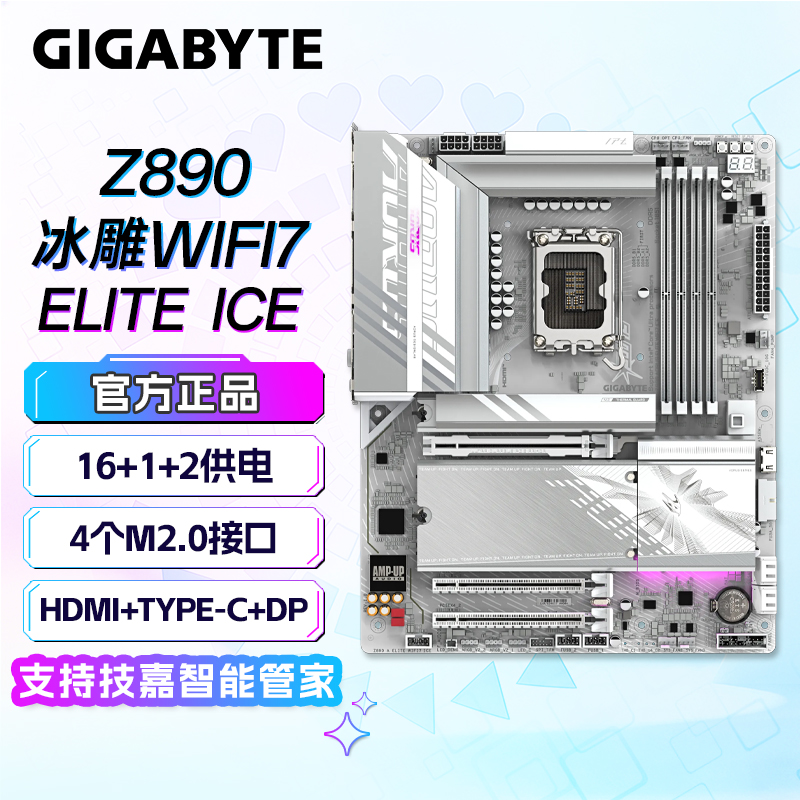 • 商品名称:技嘉(GIGABYTE)冰雕Z890 AORUS ELITE WIFI7 ICE DDR5主板