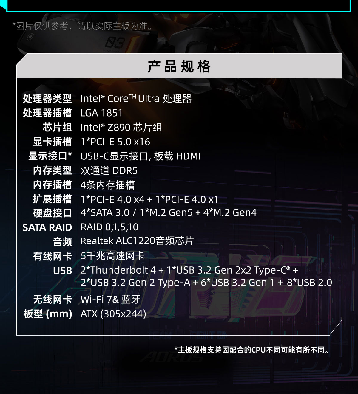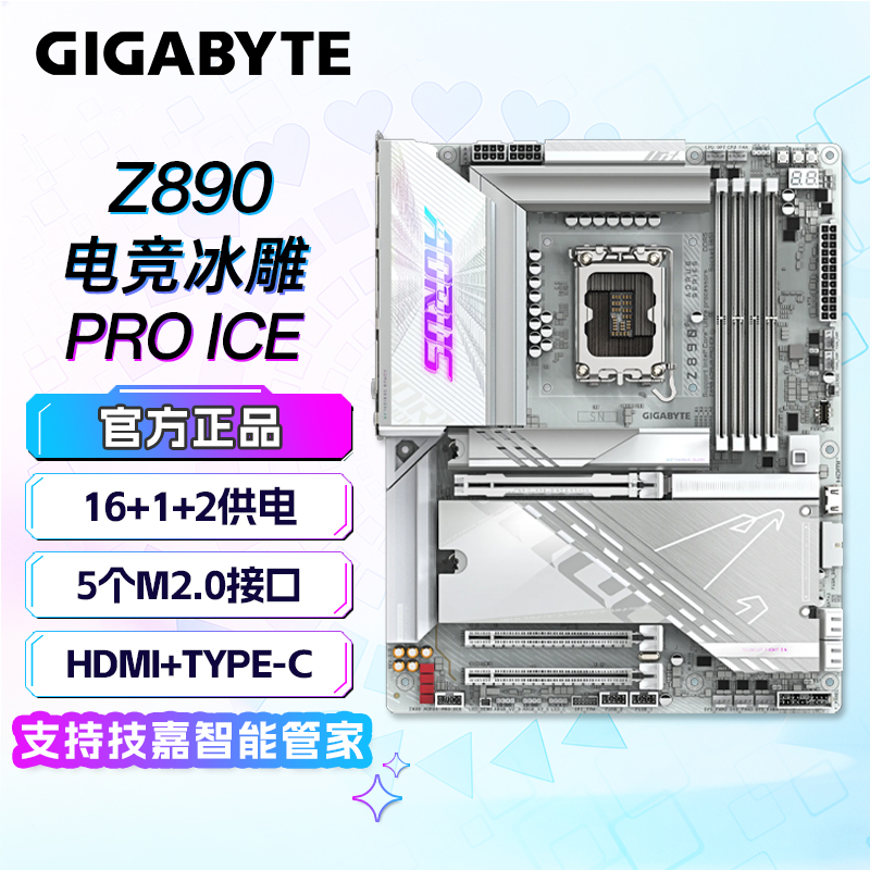 • 商品名称:技嘉(GIGABYTE)电竞冰雕Z890 AORUS PRO ICE DDR5主板