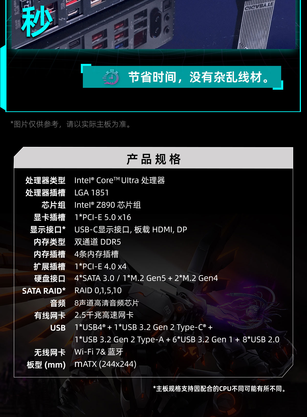• 商品名称:技嘉(GIGABYTE)技嘉冰雕Z890M AORUS ELITE WF7 ICE DDR5主板